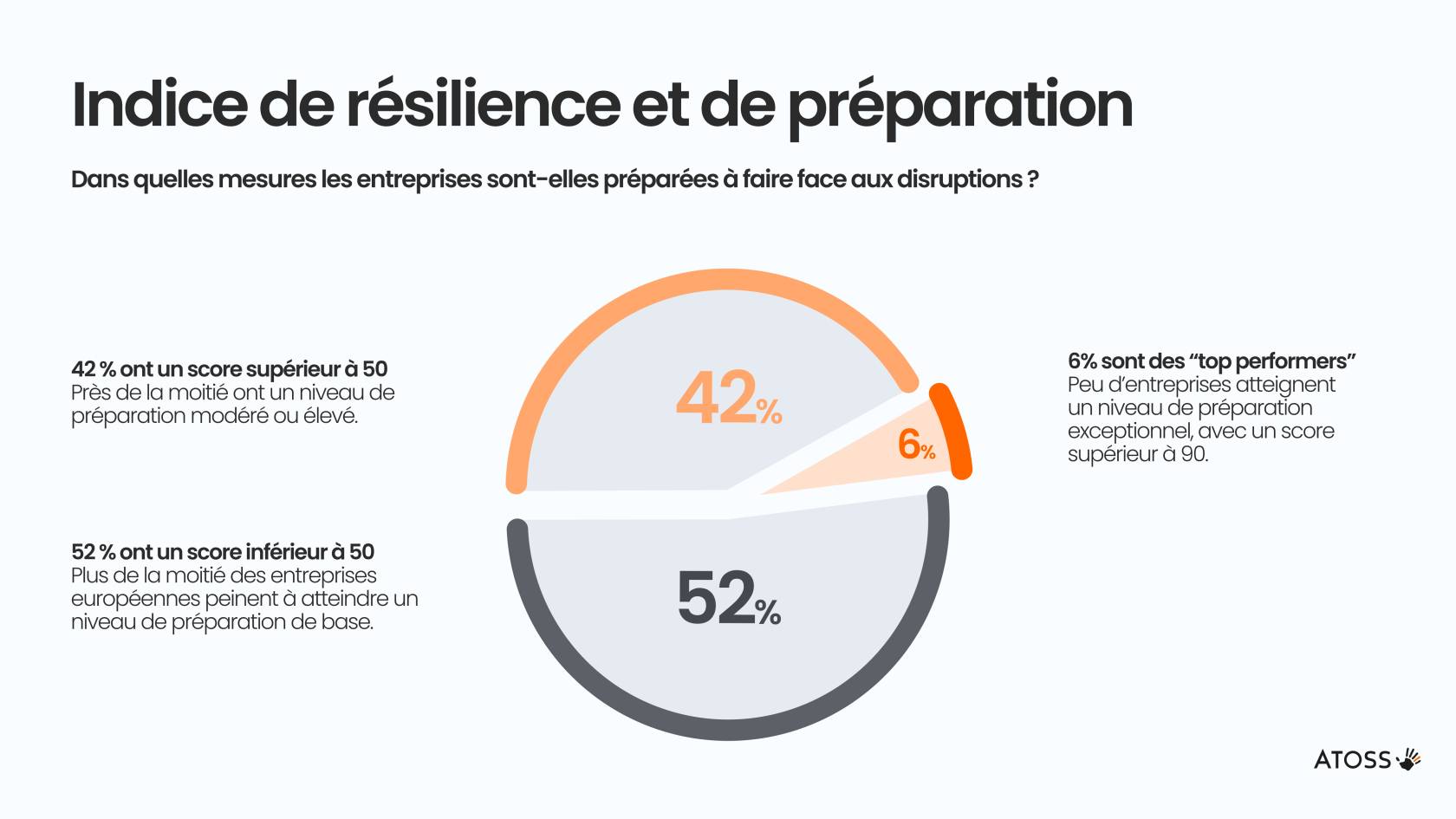 L’étude, menée par le cabinet international d'études de marché B2B International en coopération avec ATOSS Software SE, a interrogé des décideurs issus d'entreprises de toutes tailles en Belgique, dans la région DACH, en France, aux Pays-Bas et en Suède. Elle a analysé leur niveau de préparation et le potentiel des mesures ciblées de gestion des effectifs dans trois domaines essentiels à la résilience des entreprises : la technologie, la main-d'œuvre, et les capacités organisationnelles.